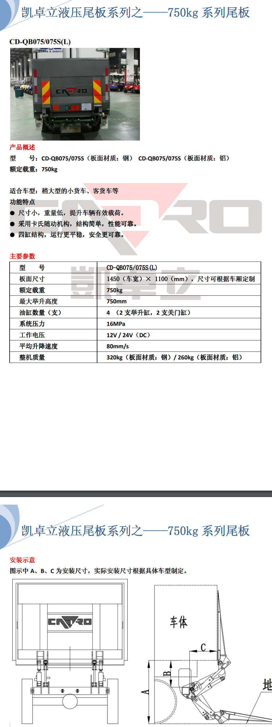 懸臂式尾板750kg系列產品—如“CD-QB075/075”等.